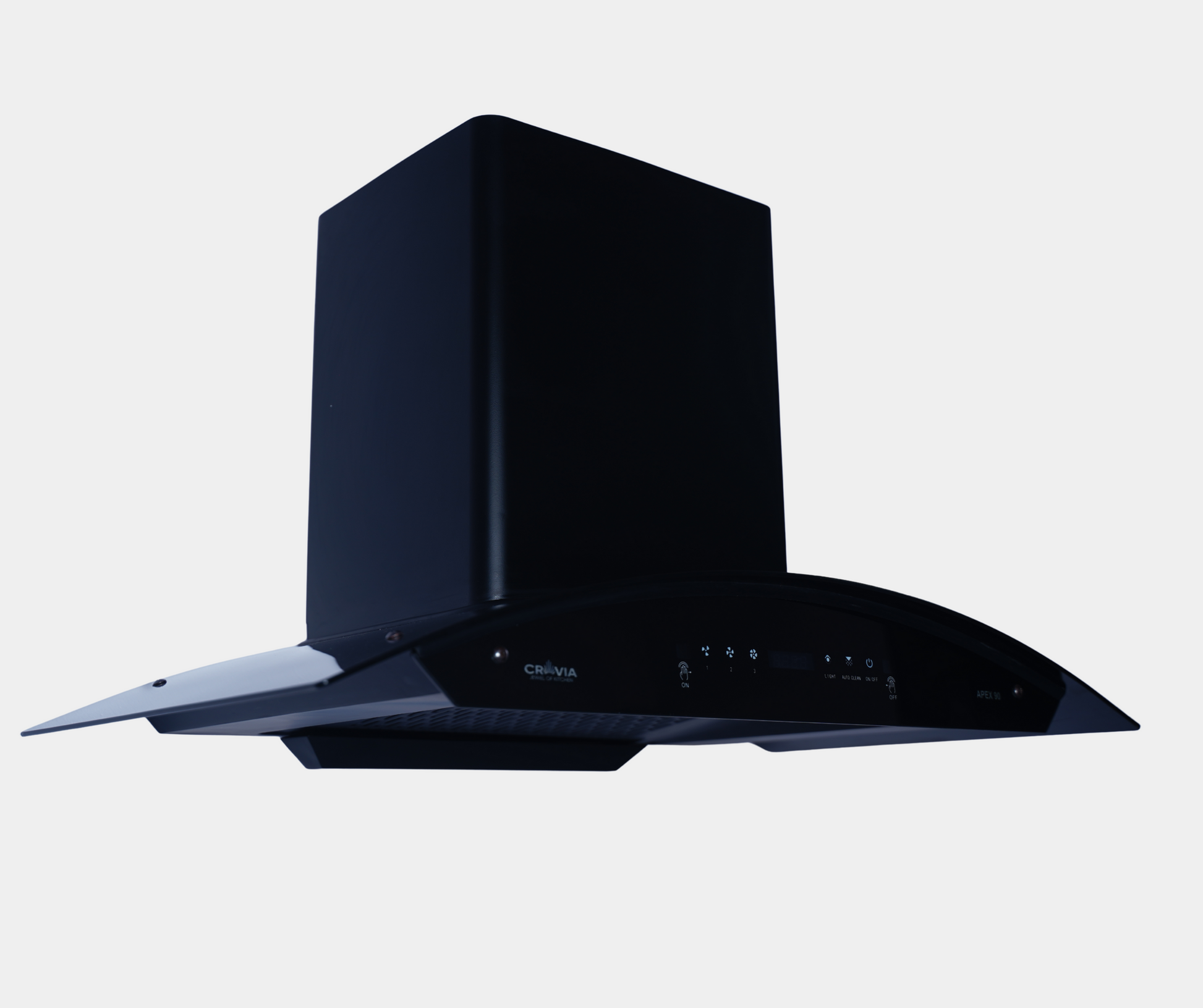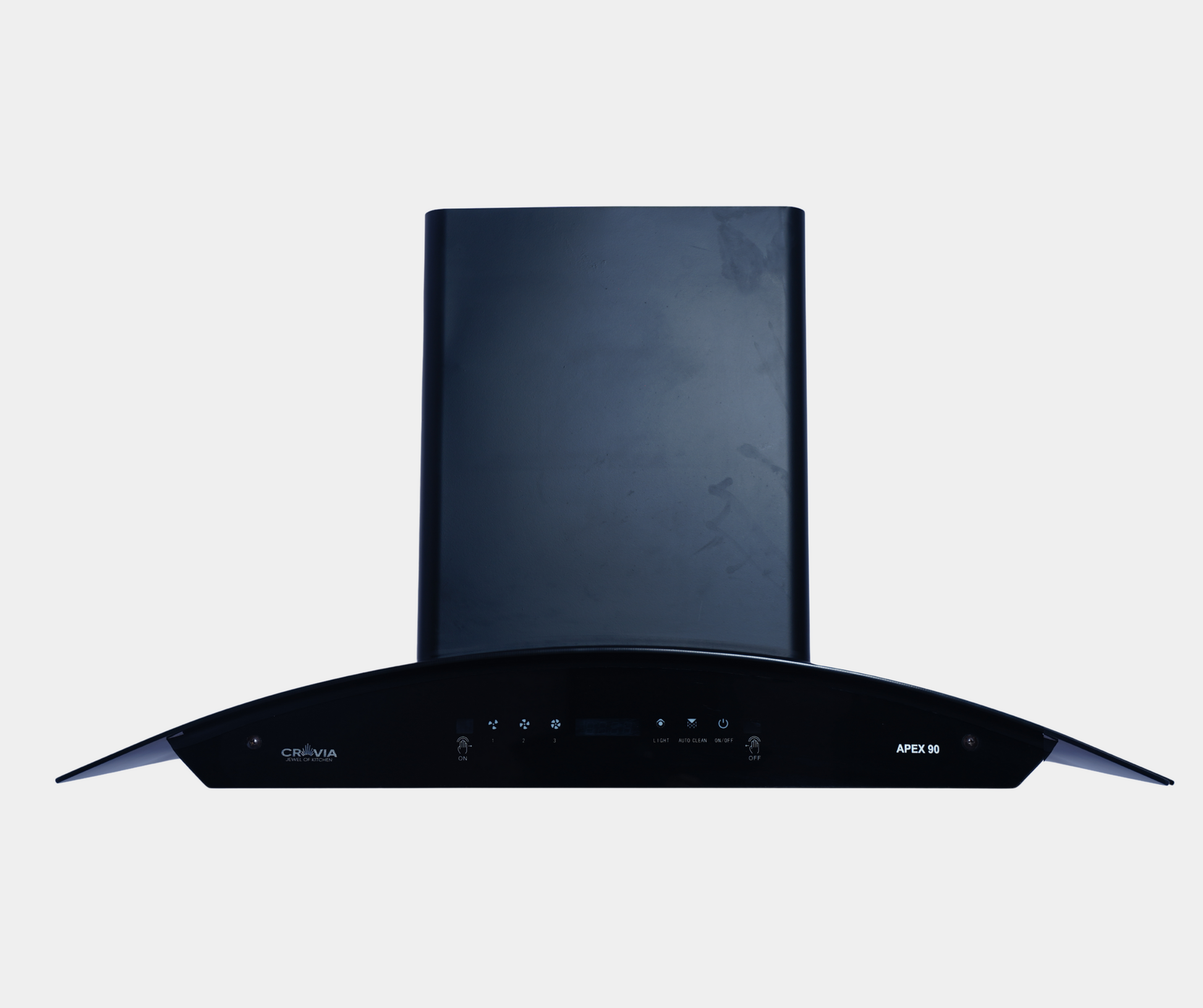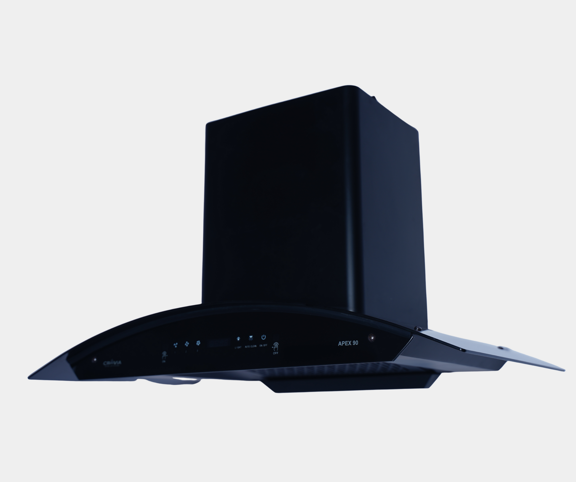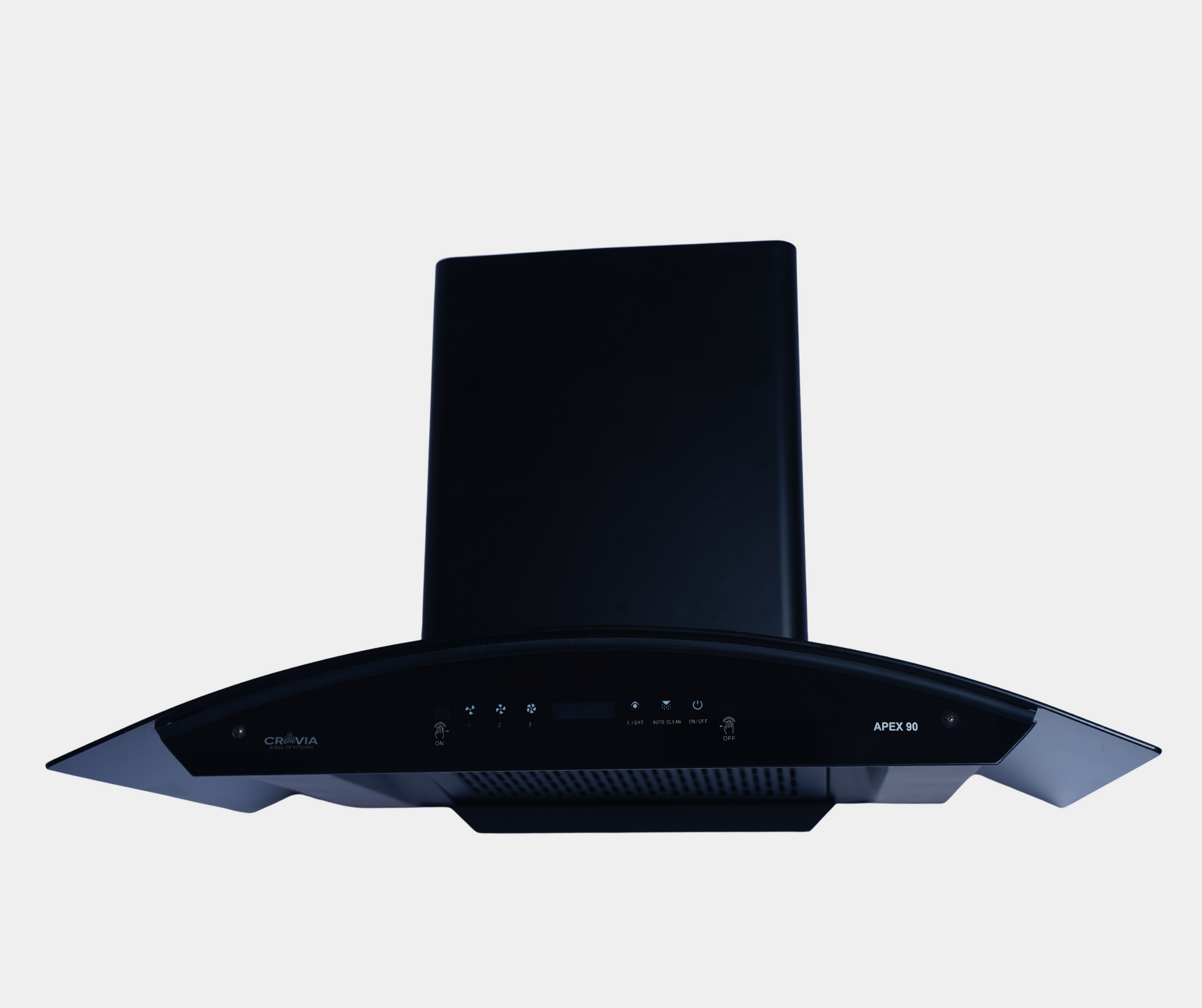 ITEM: COOKER HOOD PRODUCT SIZE: 900 MM MOTOR POWER: 180 W SUCTION CAPACITY: Up to 1525 M3/HR NOISE LEVEL: 53 DB (A) BLOWER: METAL LAMP: LED 2X1.5W FILTER: FILTERLESS OUTLET DIAMETER: 150 MM COLOR/FINISH: BLACK POWDER COATING CONTROL: 3 SPEED TOUCH GESTURE CONTROL